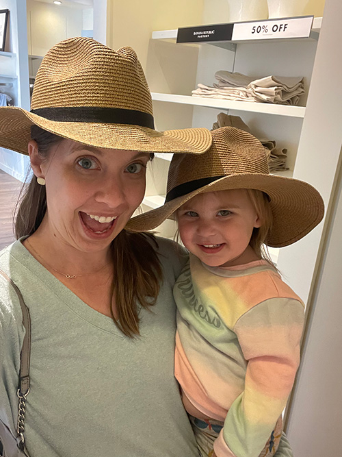 - “I had a baby during COVID and was also a resource for other people. (That) was a new level of balance for me,” says Krista Woods — pictured here with her daughter, Genevieve, and husband, Dan — on being a mother and therapist.